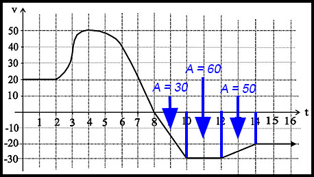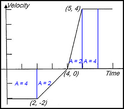 (ii) By calculating the respective areas between the function and the t axis, the velocity at t = 2 is 4.5 m/sec.