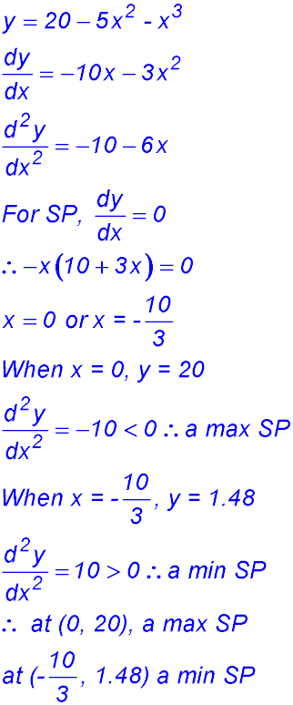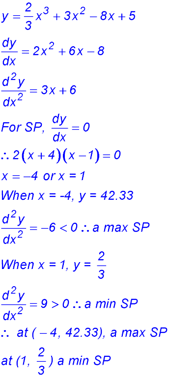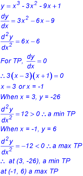 1. For y = x3 - 3x2 - 9x + 1, find the coordinates of any turning points and determine their nature.