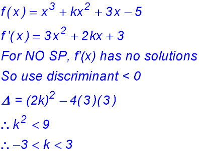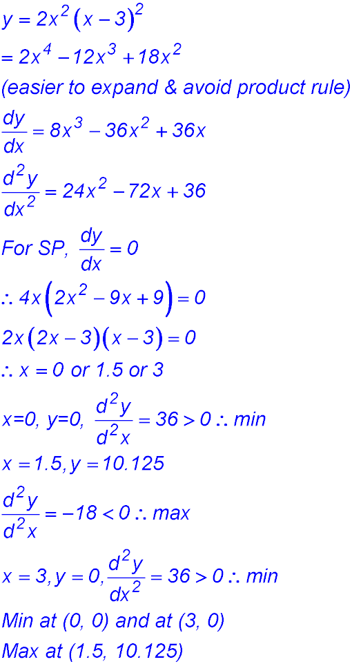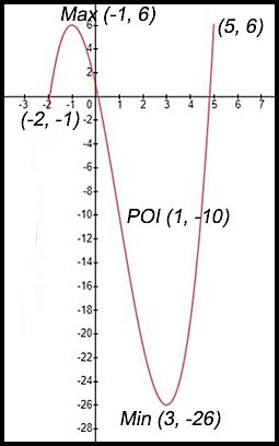 An unusual curve. Plot the two points and show they are max/min. Oops - they are going the wrong way.