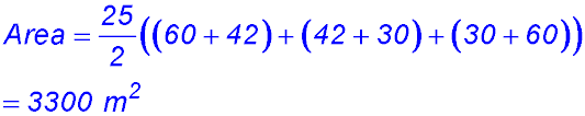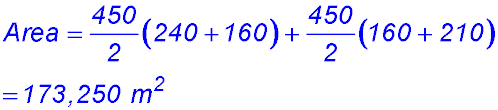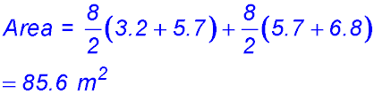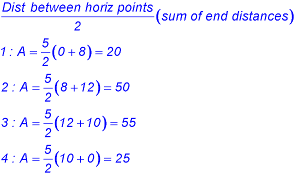 OR Calculate the total area in one go by adding the consecutive pairs of distances in the second line: