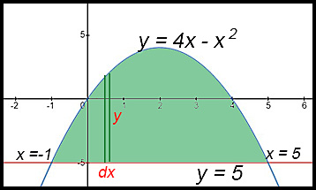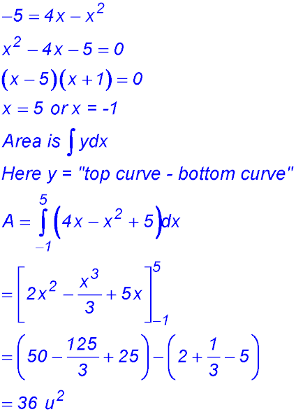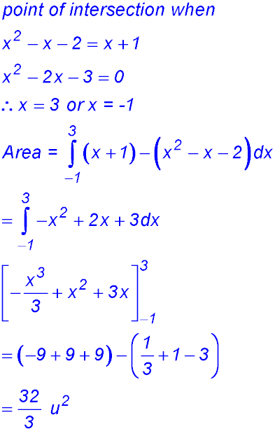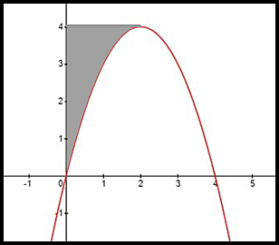 We now take the negative part of this y equation as we want the part of the parabola below x = 2: