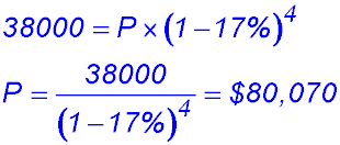 3. Value = $132000 × (1 - 22.5%)5 = $36,904.76. |
