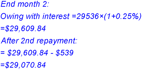 (iv) The payment in month 2 was $2,000 and the interest which was due was $1,748. Hence the difference - $252 - is the amount by which the loan decreases.