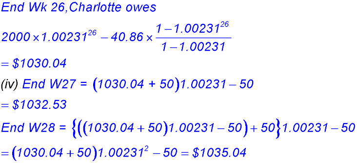 (v) At the end of 48 weeks, the balance has risen to $1,086.28