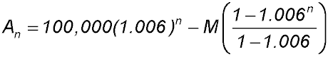 (i) Show that A2 = 100,000 (1.006)2 - M(1 + 1.006 + 1.0062).