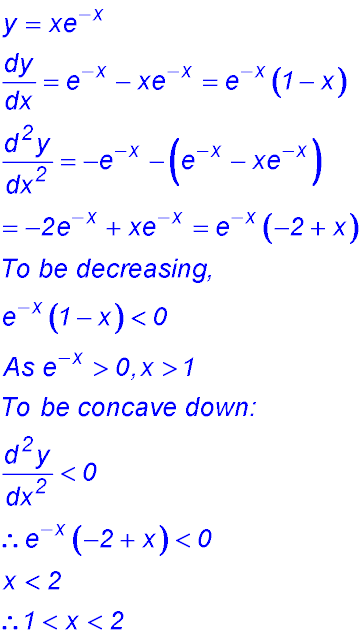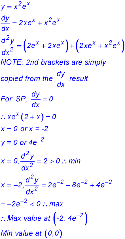 Exponential functions - Applications of differentiation - max/min questions.