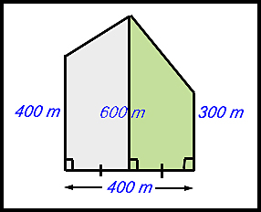 Answer.(i) Area (grey) = 100,000 m2. Area (green) = 90,000 m2. Area (total) = 19 km2. |