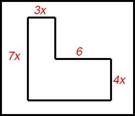 Write an algebraic expression (in the simplest form) to describe the perimeter of the above figure. Answer.Perimeter is 20x + 12. |