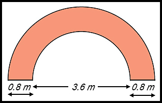 | 5. A entrance to a tunnel is constructed with two concentric semicircles. The cross-section and the main measurements are shown in the following diagram.
