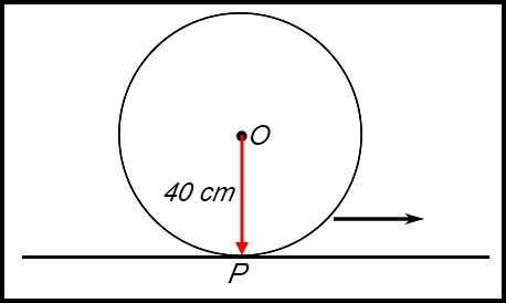 13. A wheel of radius 40 cm and centre O rolls along a horizontal path as shown below.