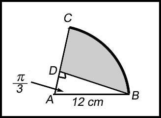 16. In the diagram below, ABC is a sector of a circle with centre at A and the lengths of the radii AB and AC = 12 cm.