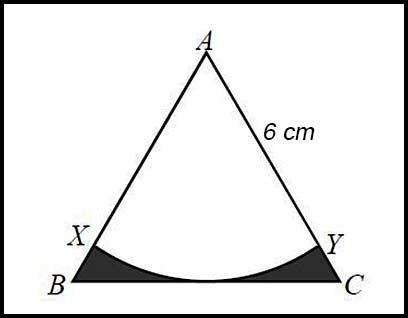 In the diagram, △ ABC is an equilateral triangle with the sides of length 6 cm. An arc with centre A and BC as tangent, cuts AB and AC at X and Y respectively.