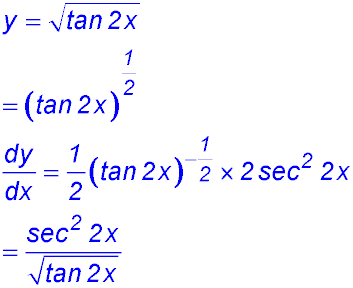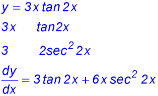 y' = 2(tan 3x)1 × sec2 3x × 3 = 6 tan 3x sec2 3x |